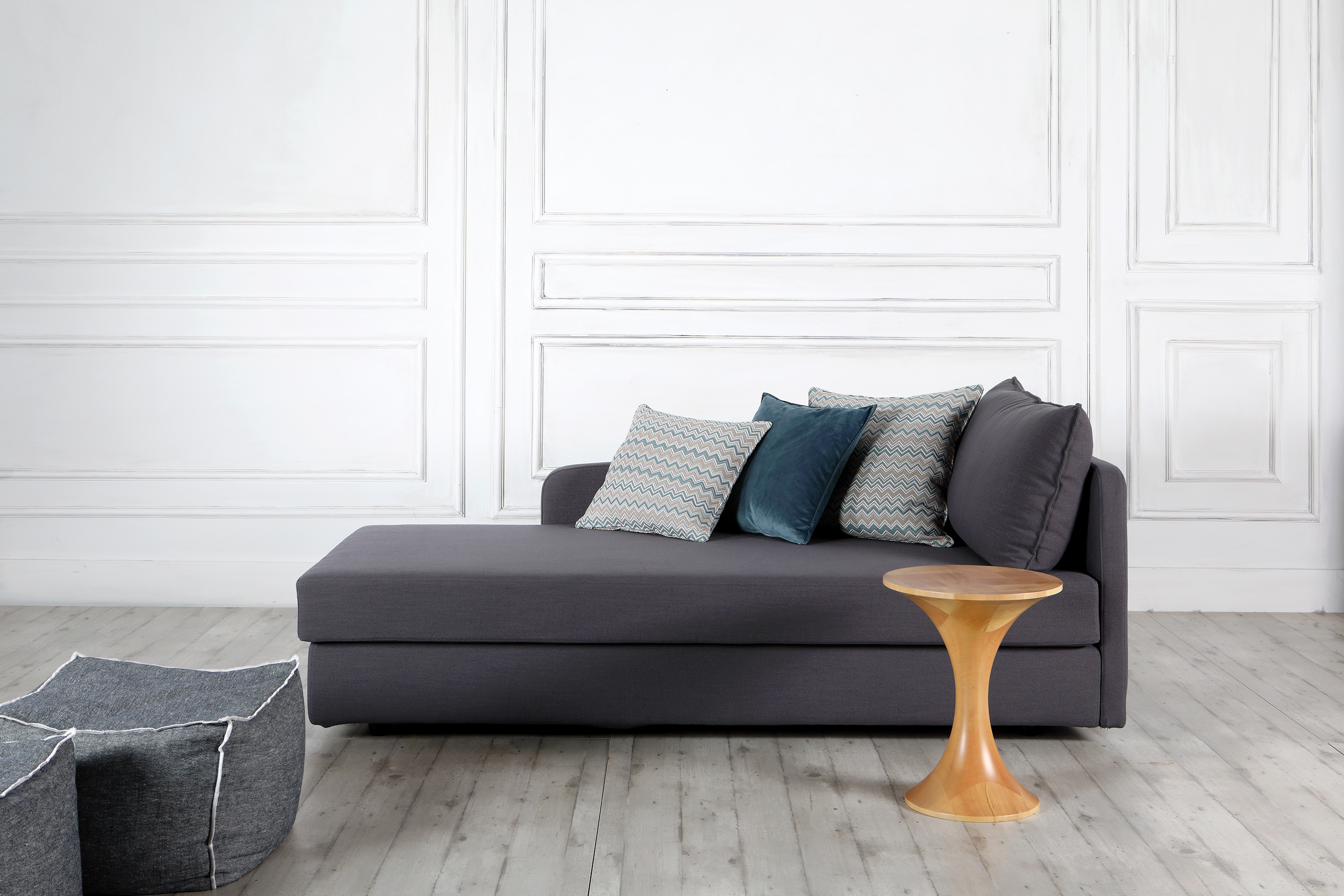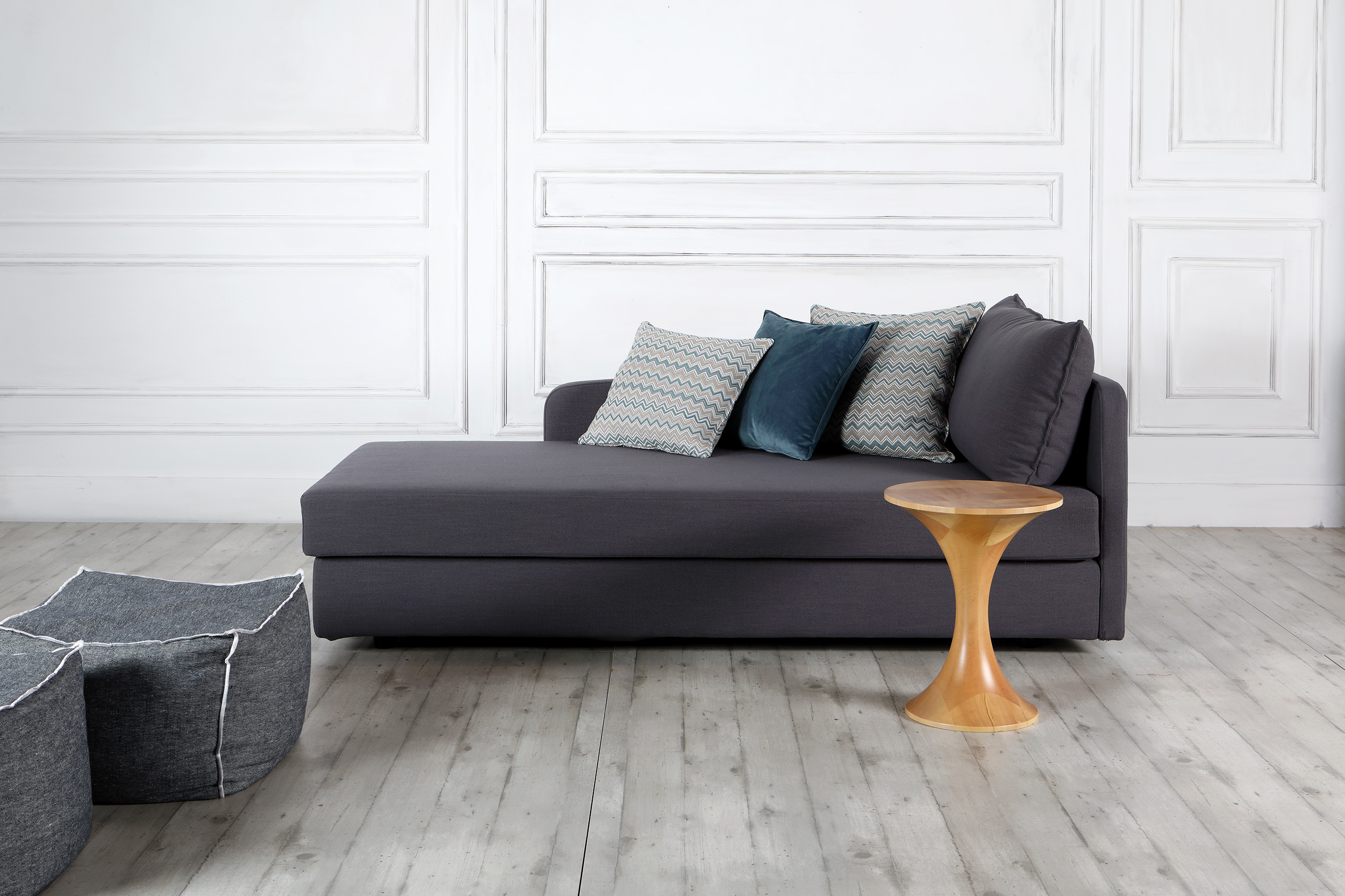Η βάση του καναπέ είναι από μασίφ ξύλο και επενδεδυμένη με αφρώδες υλικό διαφόρων πυκνοτήτων. Τα μεταλλικά πόδια είναι κατασκευασμένα από συμπαγές λιωμένο αλουμίνιο, βαμμένο ηλεκτροστατικά. Υπάρχει ένα επιπλέον πόδι στη μέση των καναπέδων μεγαλύτερων διαστάσεων για καλύτερη στήριξη.